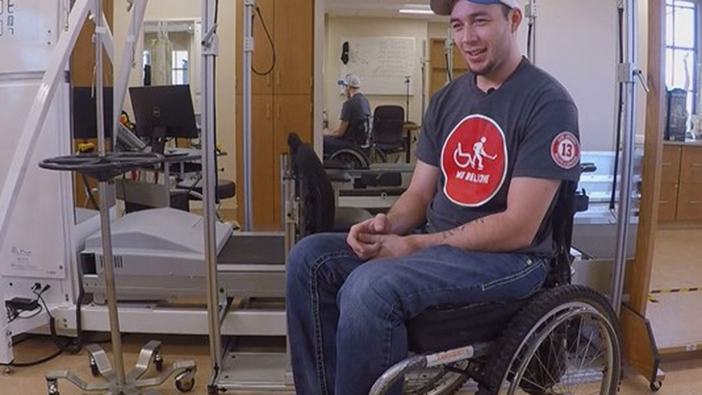 on Watch “New spinal implant allows 3 paralyzed men to stand, walk and swim again” on YouTube