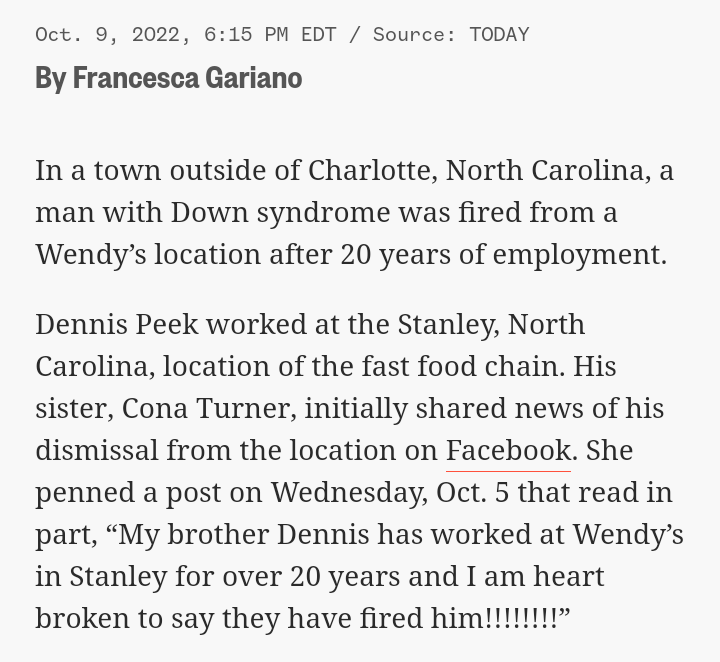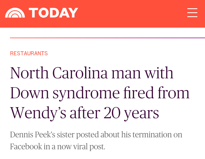 Watch “Man with Down syndrome fired from Wendy’s after 20 years” on YouTube